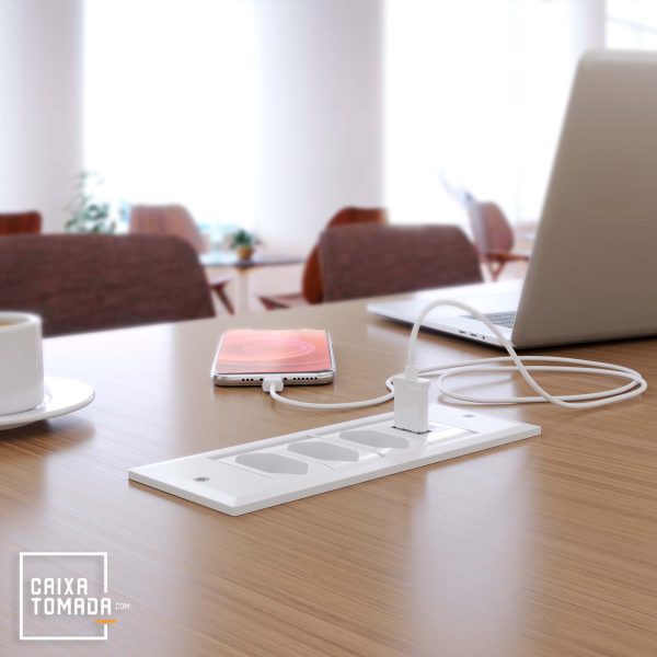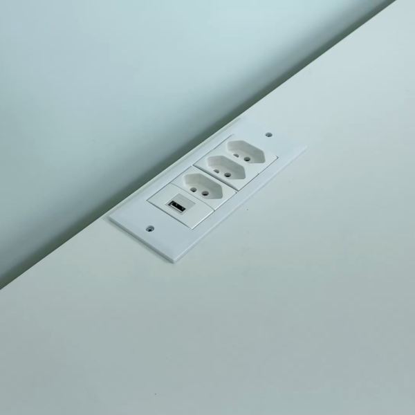A caixa de tomada foi desenvolvida para proporcionar versatilidade e conectividade ao seu móvel. Seu colarinho possui cantos retos que ficam sobrepostos ao tampo da mesa. Com excelente custo-benefício este modelo de caixa tomada abriga até 4 módulos que podem ser compostos por blocos de Tomada Elétrica, HDMI, USB Dados, USB Carregador, VGA, Áudio P2 Estéreo, Interruptor Simples, Interruptor Paralelo, Interruptor Pulsador, Interruptor Intermediário, Coaxial, RJ-45 (rede), RJ-11 (telefone), etc. As conexões possuem sistema totalmente modular, ou seja, o usuário conforme sua necessidade pode definir quais blocos serão instalados.