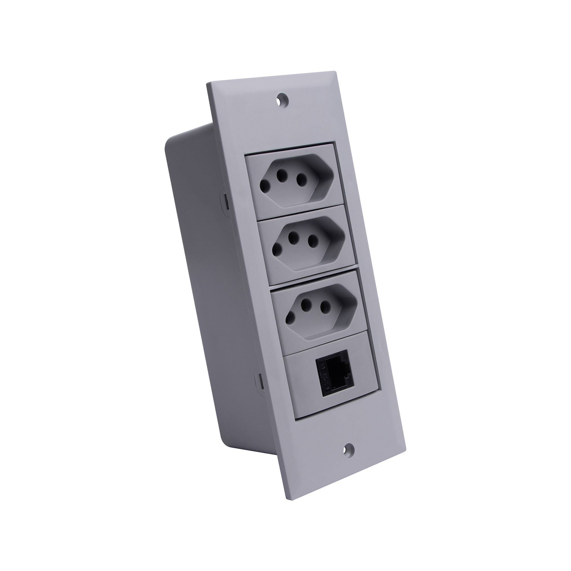 A caixa de tomada foi desenvolvida para proporcionar versatilidade e conectividade ao seu móvel. Seu colarinho possui cantos retos que ficam sobrepostos ao tampo da mesa. Com excelente custo-benefício este modelo de caixa tomada abriga até 4 módulos que podem ser compostos por blocos de Tomada Elétrica, HDMI, USB Dados, USB Carregador, VGA, Áudio P2 Estéreo, Interruptor Simples, Interruptor Paralelo, Interruptor Pulsador, Interruptor Intermediário, Coaxial, RJ-45 (rede), RJ-11 (telefone), etc. As conexões possuem sistema totalmente modular, ou seja, o usuário conforme sua necessidade pode definir quais blocos serão instalados.