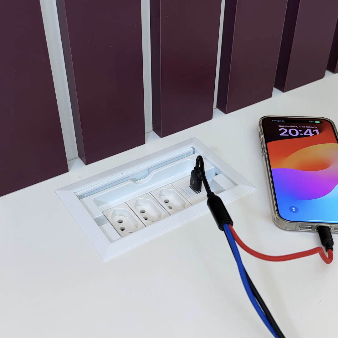 É indicada para montagem em bancadas, salas de conferência, salas de treinamento, painel de TV, sala de estar, móveis sob medida, showrooms e escritórios. O produto proporciona ao usuário praticidade na hora de fazer as conexões elétricas, de vídeo, de dados e rede.