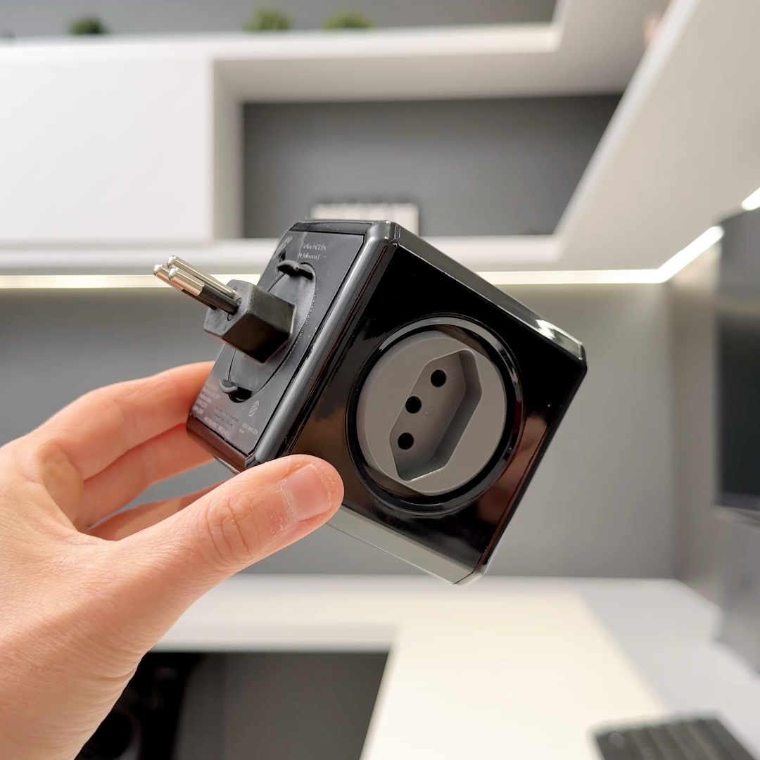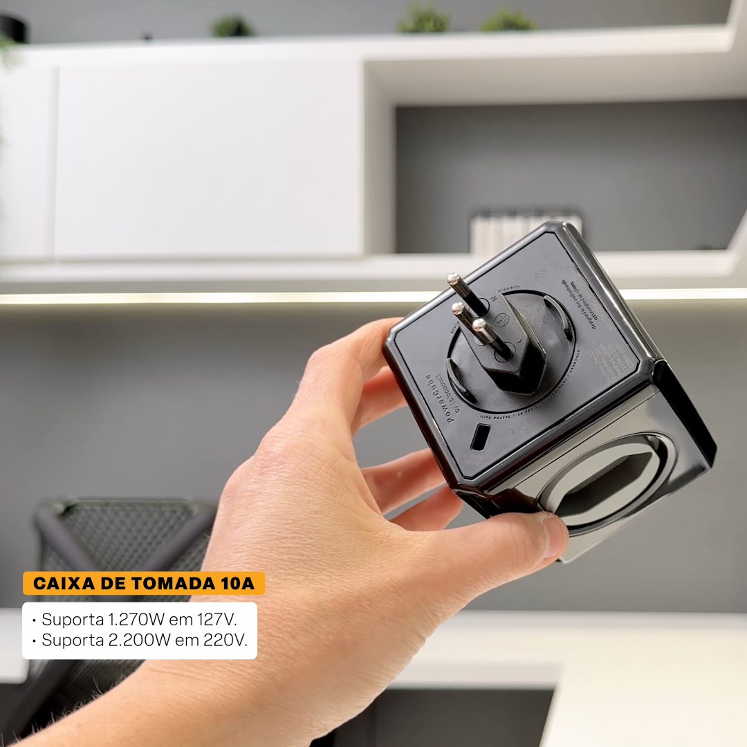 Além da praticidade, ela conta com um disjuntor rearmável (resetável) integrado, que ajuda a evitar sobrecarga dos equipamentos ligados, trazendo mais segurança para o uso diário.