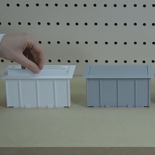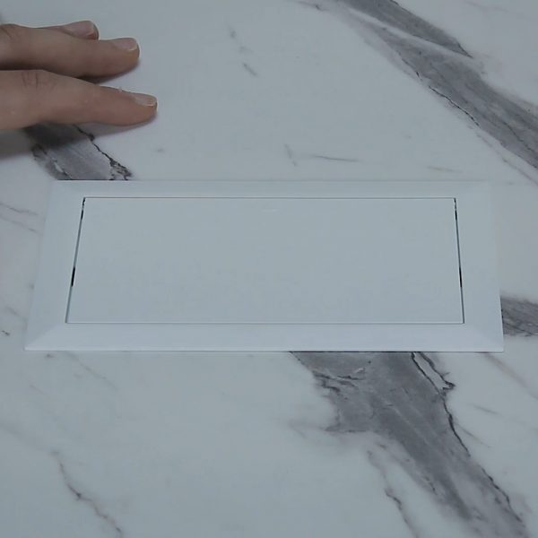 A CX04FN possui tampa basculante que se esconde dentro da própria caixa, mantendo as conexões acessíveis durante o uso e totalmente ocultas quando não estão em uso.