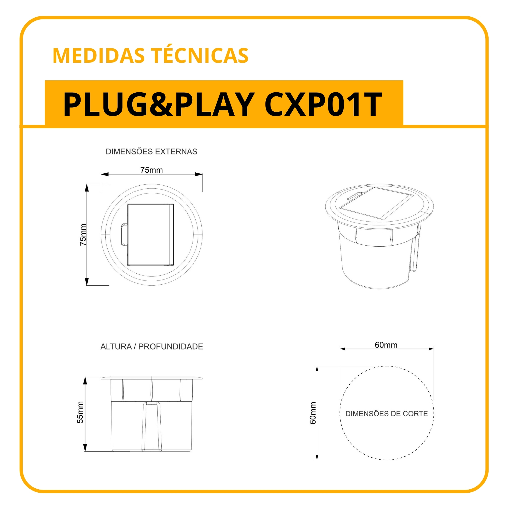 Com excelente custo-benefício este modelo de caixa tomada possui 1 tomada FLEX (até 20A) e cabo plug (1,5 metros ou 3 metros) para você ligar e usar. O modelo possui bordas ergonômicas que ficam sobrepostas ao móvel.