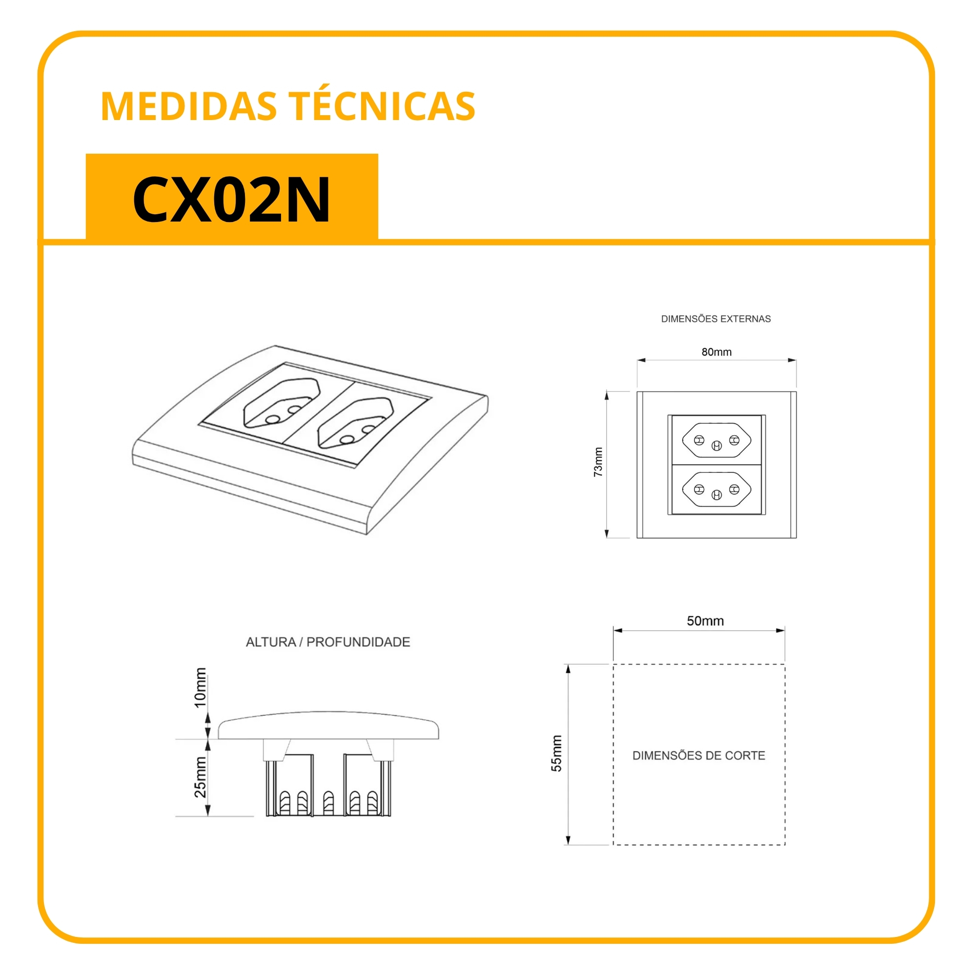– Dimensional externo da caixa: 80mm (L) x 25mm (P)** x 73mm (C) – **Profundida para tomada elétrica