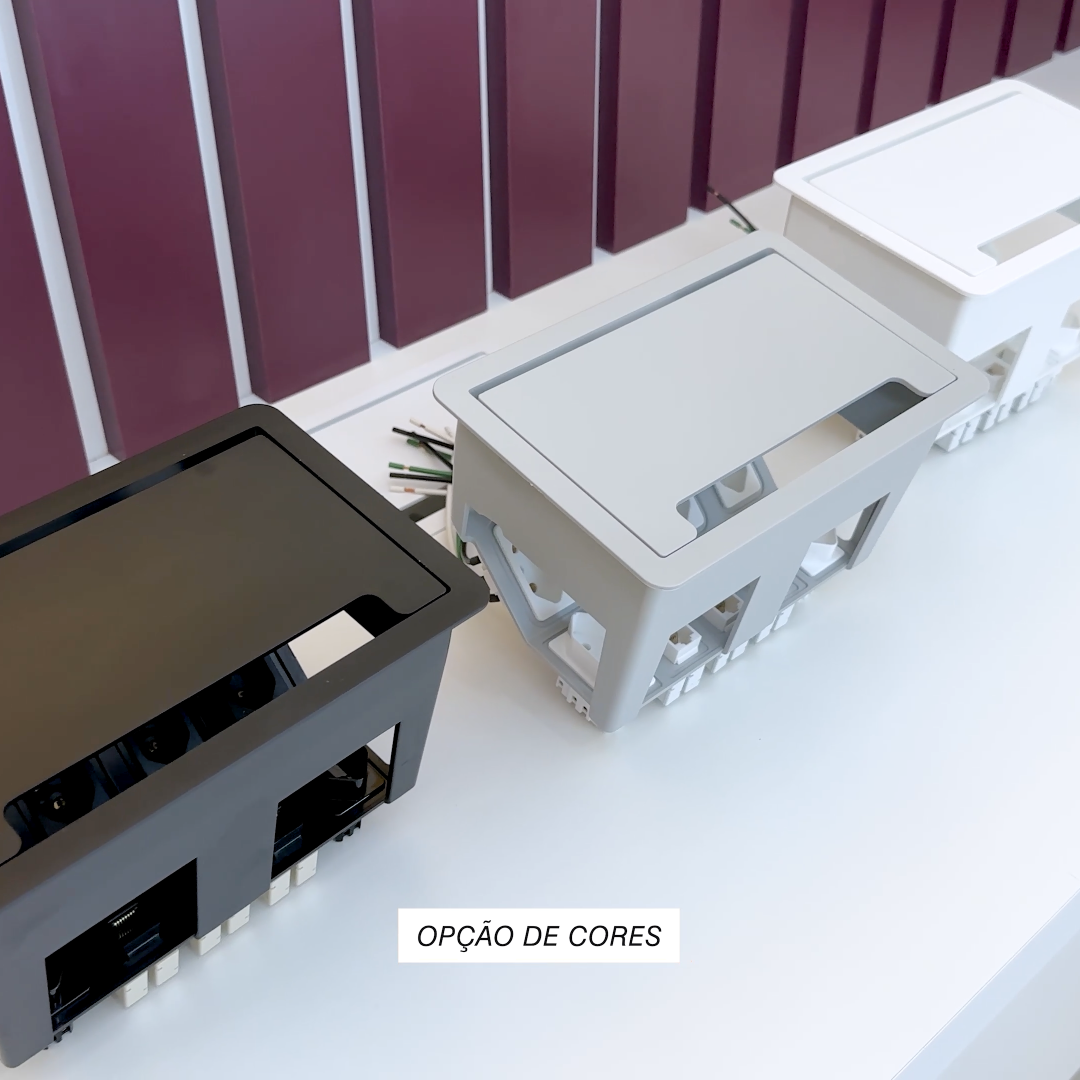 A Caixa de Tomada CX63 é uma solução de conectividade versátil e personalizável projetada para melhorar a produtividade em ambientes de trabalho. Com múltiplos pontos de conexão elétricos, de vídeo, dados e carregamento, essa caixa permite que você escolha e personalize os módulos de acordo com suas necessidades específicas.