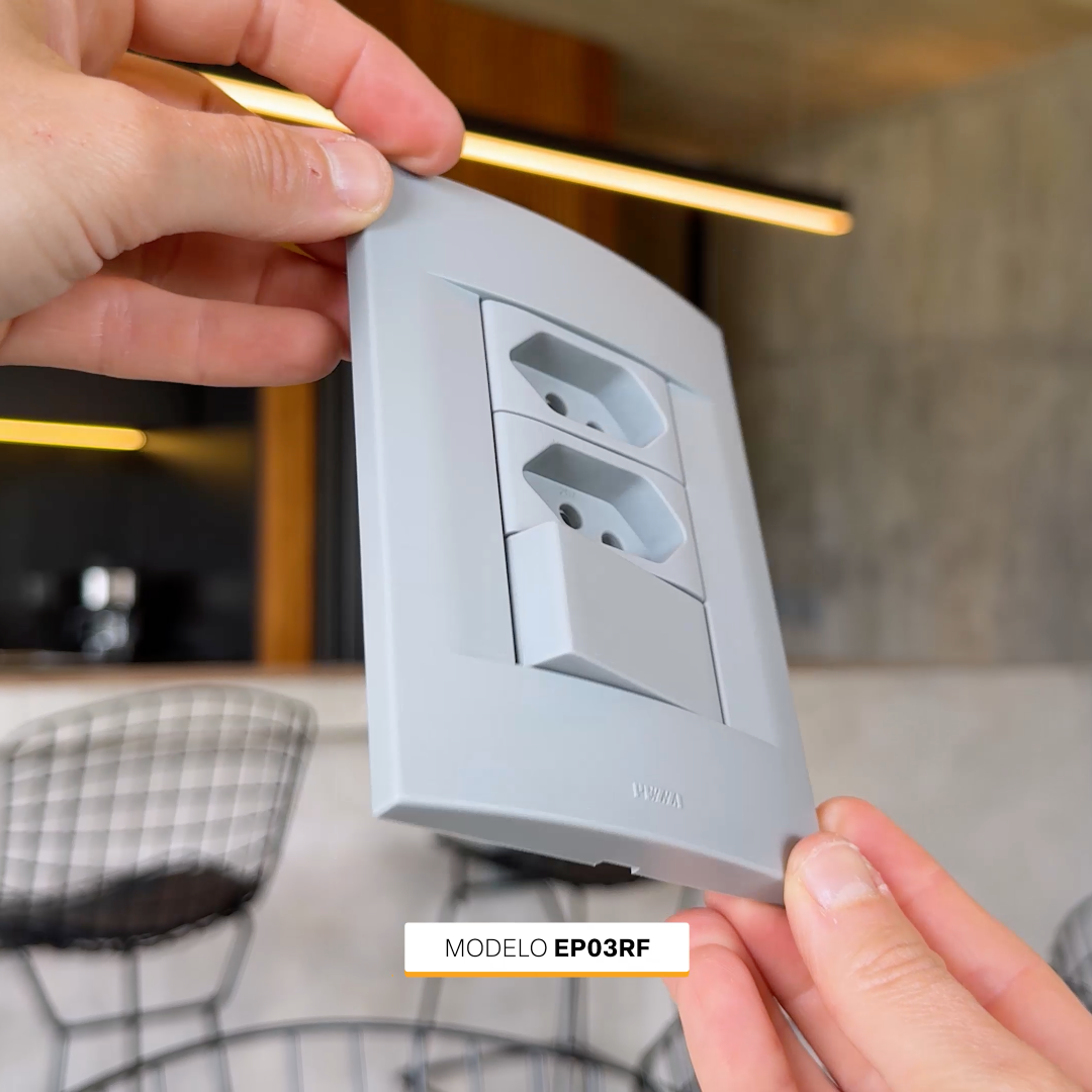 Além da estética diferenciada, os espelhos oferecem excelente custo-benefício e alta personalização. Com capacidade para até 3 módulos na versão 4×2, é possível integrar diversas funções, como tomadas elétricas, HDMI, USB carregador, interruptores, RJ-45 (rede), RJ-11 (telefone) e muito mais.