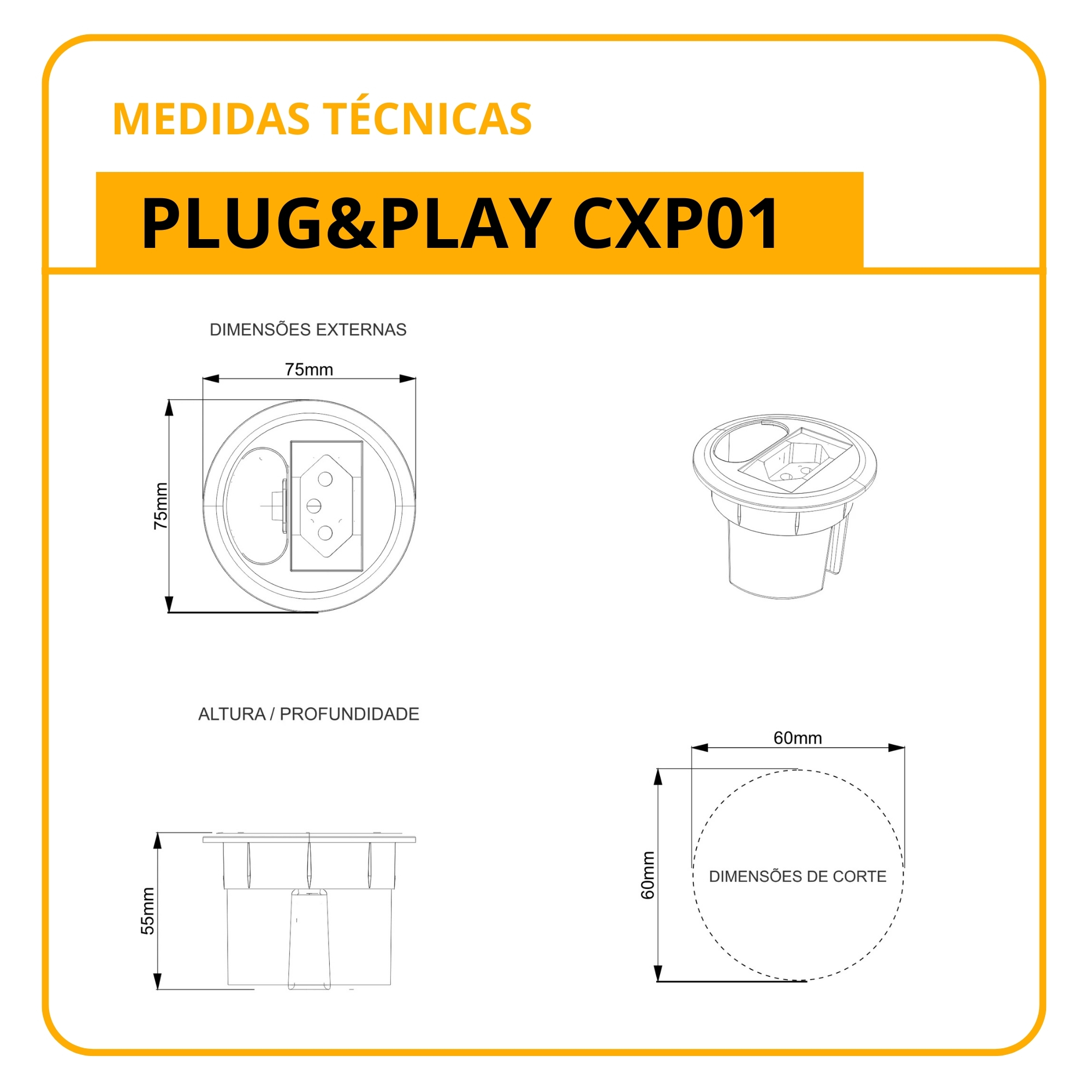 É indicada para montagem em bancadas, salas de conferência, salas de treinamento, painel de TV, sala de estar, móveis sob medida, showrooms e escritórios. O produto proporciona ao usuário praticidade na hora de fazer as conexões elétricas, de vídeo, de dados e rede.