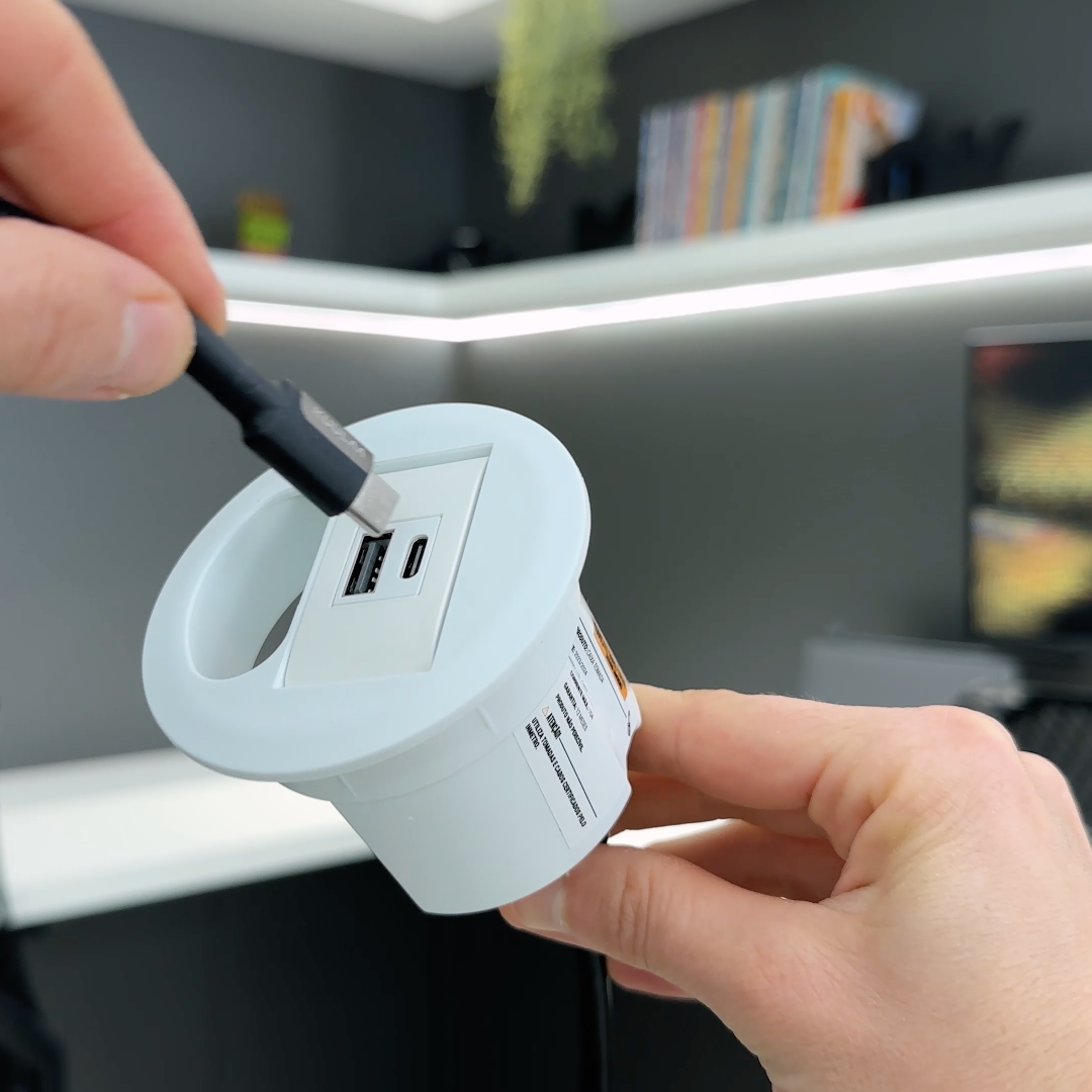 Com excelente custo-benefício este modelo de caixa tomada possui 1 USB Carregador Padrão de 15W + 1 USB Carregador Tipo C de 20W e cabo plug (1,5 metros) para você ligar e usar. O modelo possui bordas ergonômicas que ficam sobrepostas ao móvel e permite a passagem de cabos da parte inferior para a parte superior da mesa ou bancada.